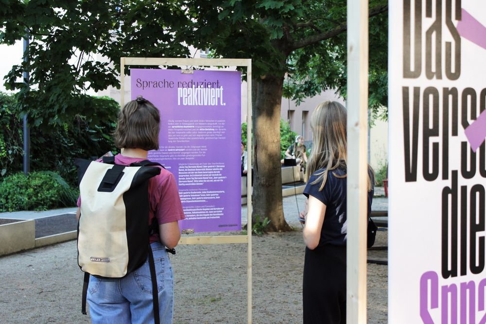 Während der diesjährigen summaery (»TheSum«) lenkte eine interaktive Plakat-Installation der Studentin Carmen Draxler (BA Visuelle Kommunikation, Fakultät Kunst und Gestaltung) den Blick der Besucher*innen auf das Thema »gendergerechte Sprache«. Draxler konzipierte die Installation mit dem Titel