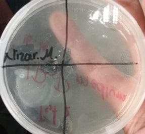- Preparation of the environment for the first bacteria crop in Petri box. two fingerprints and an A figure with the sample bacterias of Nizar mouth.
