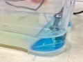Still turning blue. Even with smaller electrodes that are completely covered by the solution (buffer TAE 50x + distilled water)