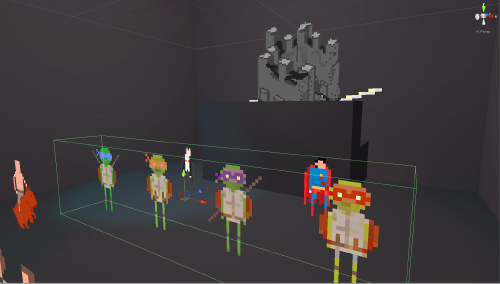 The Spirtes needs now a stage. To prevent characters from falling down we set up some colliders arround the stage.