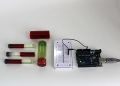 Setup: Glass tube filled with water and Euglena, the tube is wrapped in semitransparent red foil. An LED light is placed on the bottom of the glass, which is not covered with foil.