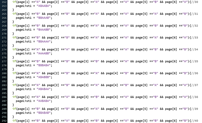 Loading the different cases of image waiting for calling in the draw() function. “Pagelist” is a string within six characters which are the six times results of keypresses. Each keypress corresponding to “A” or “B”.