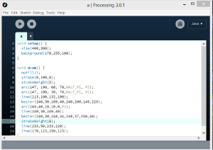 Okay, here is a letter A, made of bezier curves, arcs and lines, strokes with different weights and... green! + code