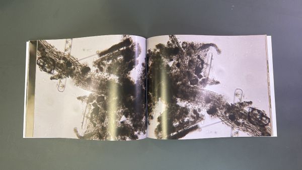The book offers a magnified look at microscopic life, revealing a hidden world and inviting to reflect on the complexity of life at its tiniest level. Through structures found under the microscope, the idea of monad is explored by speculating on its shape, texture and colours. The images were taken with the aid of the microscope and extracted from samples of different water found in Weimar including ponds around Ilm park and hidden fountains.