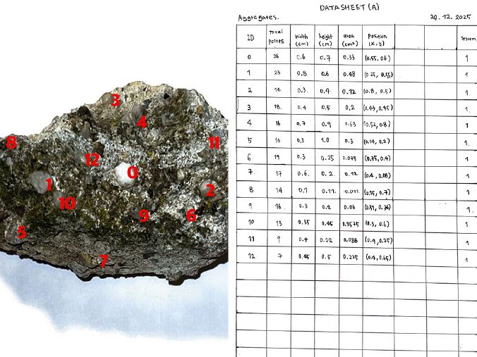 To examine the essence of concrete, I visited a Bio Lab and observed concrete under a microscope. Inside, I found countless small stones, and around them, even traces of moss were growing, making it appear as if a small world existed within. Through this process, I became increasingly interested in these small stones. It led me to wonder whether these tiny elements might actually be what supports the concrete itself. In fact, concrete is made by mixing water, cement, and aggregates such as gravel and sand. These small stones, in particular, are essential for giving concrete its strength and durability, preventing it from easily breaking apart. Although they are too small to be clearly recognized without a microscope, the presence of these countless tiny stones ultimately makes the existence of concrete possible.