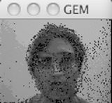 |In einem weiteren Aufbau werden drei Rechner in einem Netzwerk miteinander verbunden. An zwei Rechnern ist je eine Kamera und ein Lautsprecher, am dritten Rechner ein Mikrofon angeschlossen. Die beiden unterschiedlichen Kamerabilder werden nach bekanntem Prinzip in Klang gewandelt und über die Lautsprecher wiedergegeben. Der dritte Rechner empfängt die simultan ausgespielten Klänge und wandelt diese wiederum in ein neues Bild um. Das Resultat ist eine über den Audioweg gewonnene Mischung der beiden Ausgangsbilder. Die Abbildungen zeigen das Ergebnis der Vermischung zweier Porträts. | | | ||