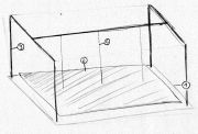 (1) Bodenplatte, (2) Stoffläche, (3) Deckengestell, (4) Fäden