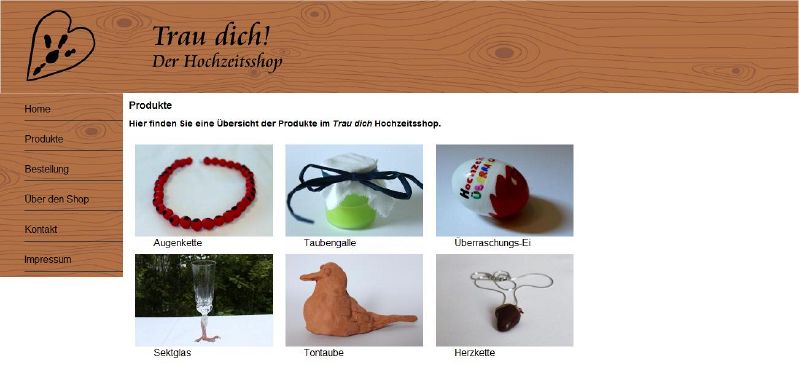Produktseite des Hochzeitsshops