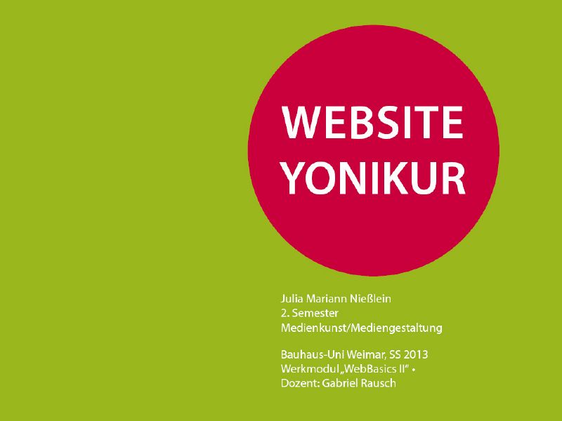 Entwurfsansicht Website Yonikur von Julia Mariann Nießlein - SS 2012, WebBasics II, Gabriel Rausch