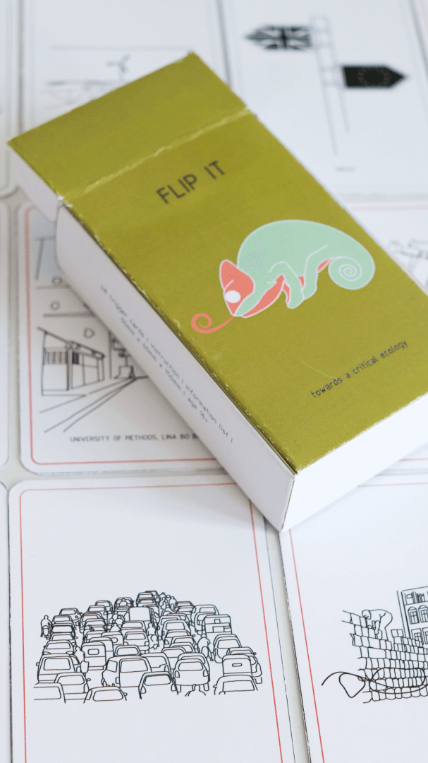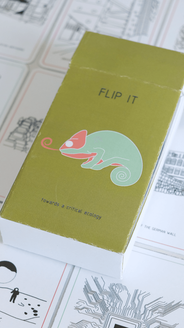 This card game is based on the work of the designer TOMÁS MALDONADO, especially his book “DESIGN, NATURE & REVOLUTION- towards a critical ecology”. The card game works as an open system: It offers associations related to six of Maldonado ́s main concepts about critical ecology within different periods of time. Through blank cards it allows an interaction and asks the players to express their own ideas on the offered inputs. The card game is a mediating membrane: It connects Maldonado ́s ideas to critical ecology, the history to the present and external information to internal associations. It is a tool for transdisciplinary thinking and creating a complex system of interrelations to work on ecological design questions.