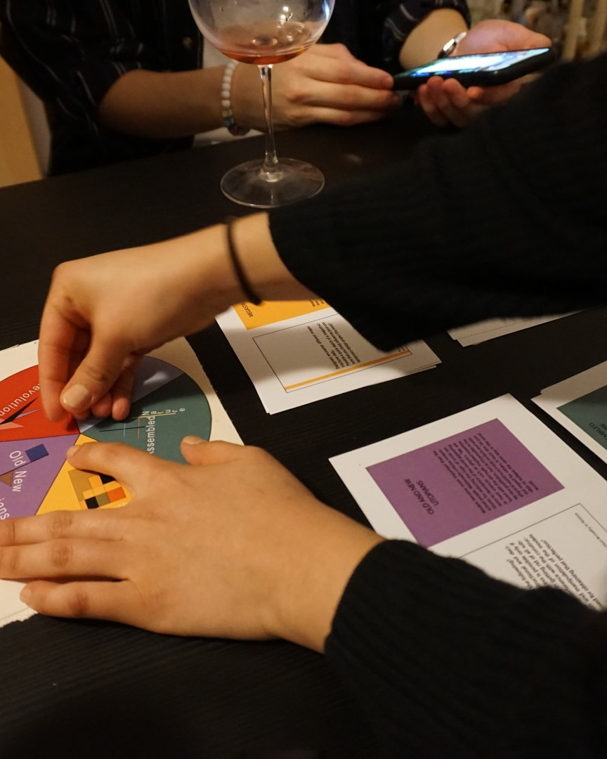 School of Dialogie is a card game inspired by the idea of ‘University of Methods’ by Tomas Maldonado. We suggest this game as a method to have a deeper understanding of the concept of Critical Ecology through the perspective of the book ‘Design, Nature And Revolution, Toward a Critical Ecology’ 1972 by Tomas Maldonado. The players are invited to question the theme, the given con- tent, the views of other players…and as an outcome to gain a broader perspective of the concept of ecology in design.
