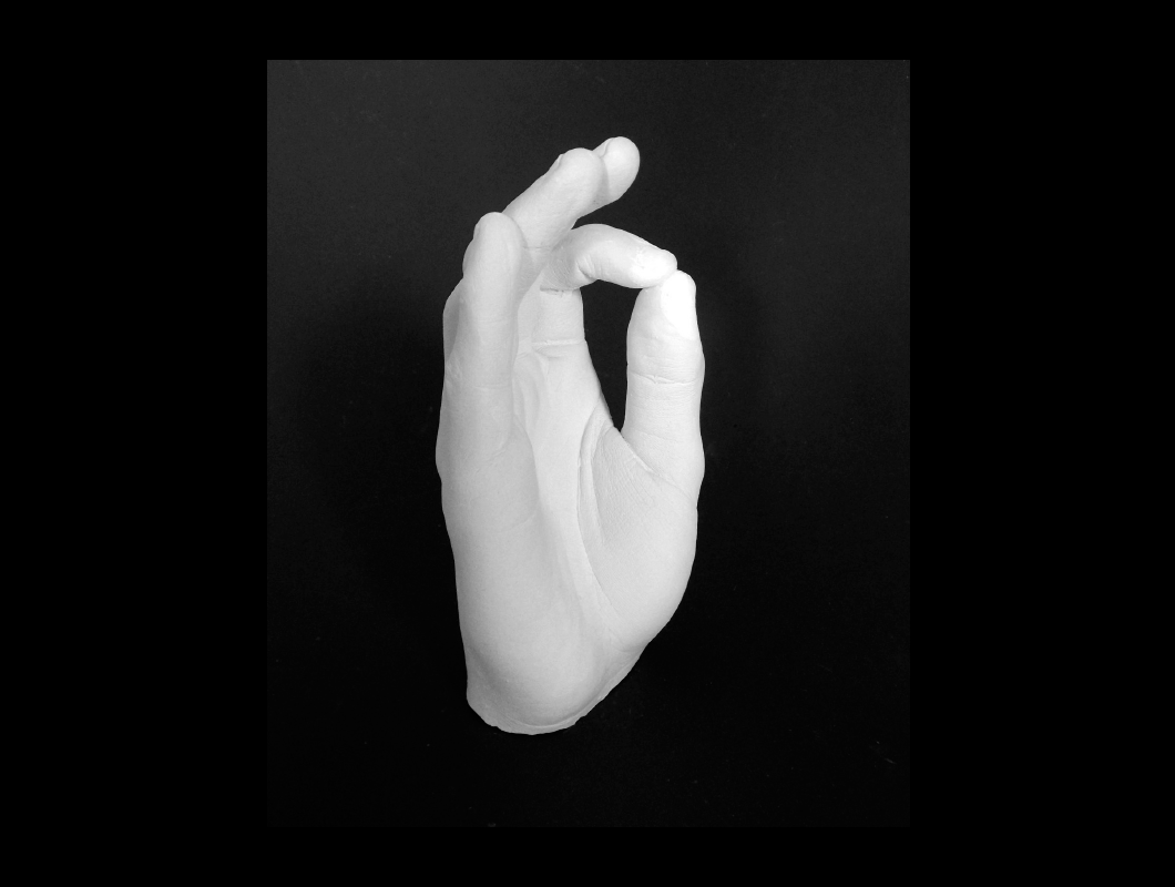 »Referenzen« beschäftigt sich mit der Definition von Einheiten anhand von Maßeinheiten, die vom Körper des Menschen abgeleitet sind. Das Ergebnis sind Gipsabgüsse meiner Prise, meiner Handspanne, meiner Faust, meiner Handfläche, meiner Daumenbreite und meiner Handvoll.
