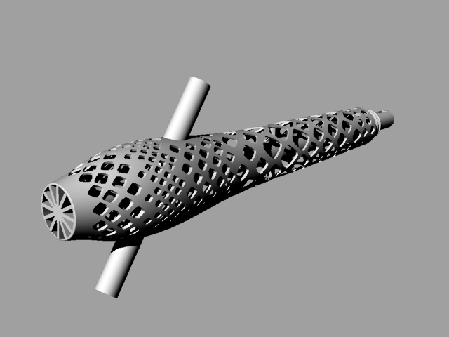 Meine ersten Berechnungen zum Rohrteil zeigten ein sehr gradliniges Aufeinandertreffen diverser Streben von der Schlagfläche des Zapfhahnes hin zu dem Ende, welches im Fass sitzt.