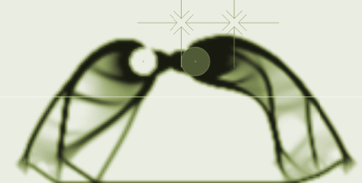 This top view calculation in 2d is really enlightening for us as it shows that the construction of the bridge model has to hold itself by building a ring coming from two sides of the obstacle frames.