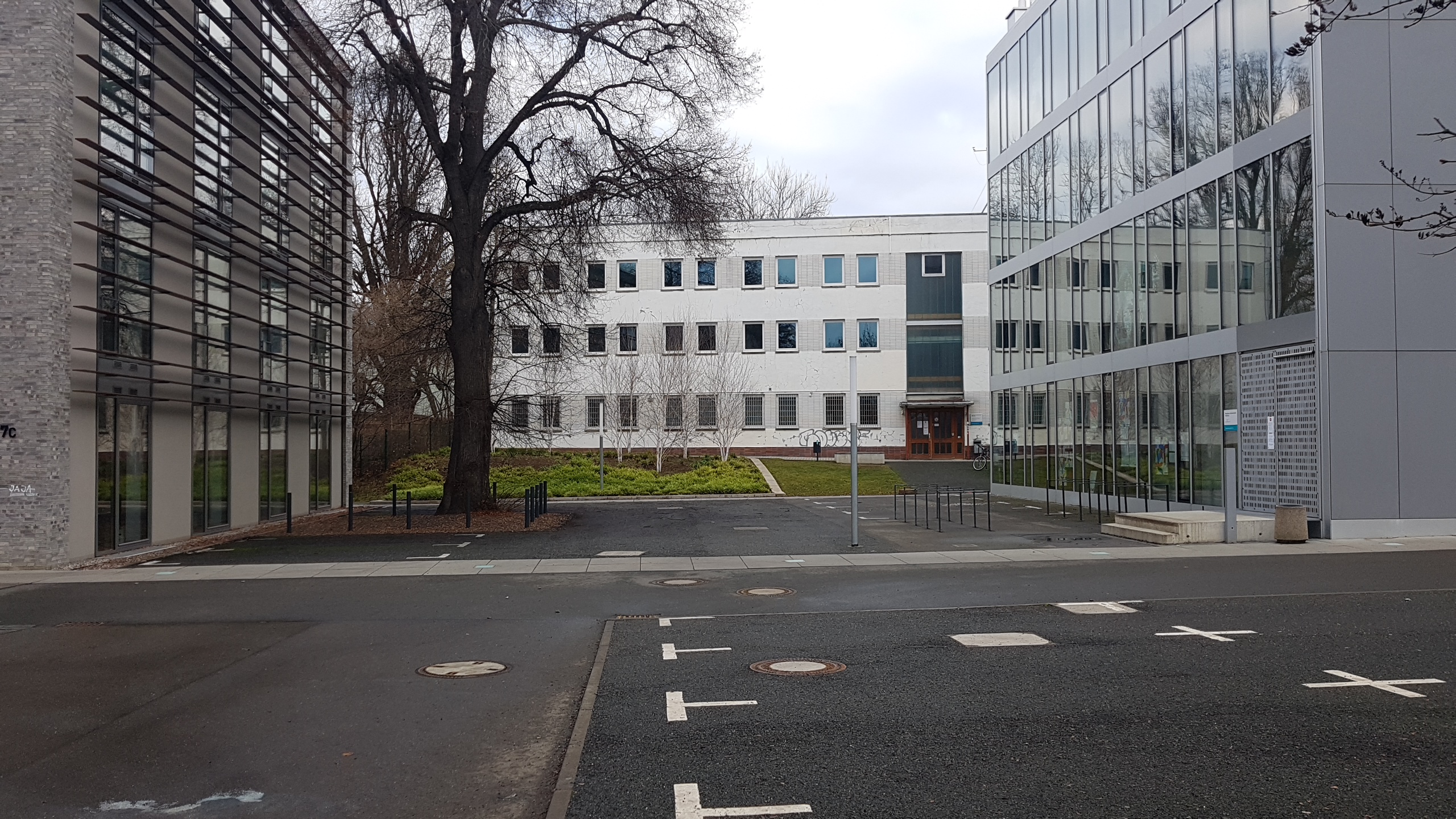 Der Südcampus der Bauhaus-Universität wurde 2015 komplett durchasphaltiert, um Platz für Stellplätze zu schaffen. Er ist das perfekte Beispiel dafür, wie Städtebau im Zeichen der Klimakrise NICHT aussehen soll.