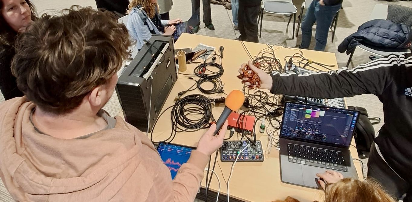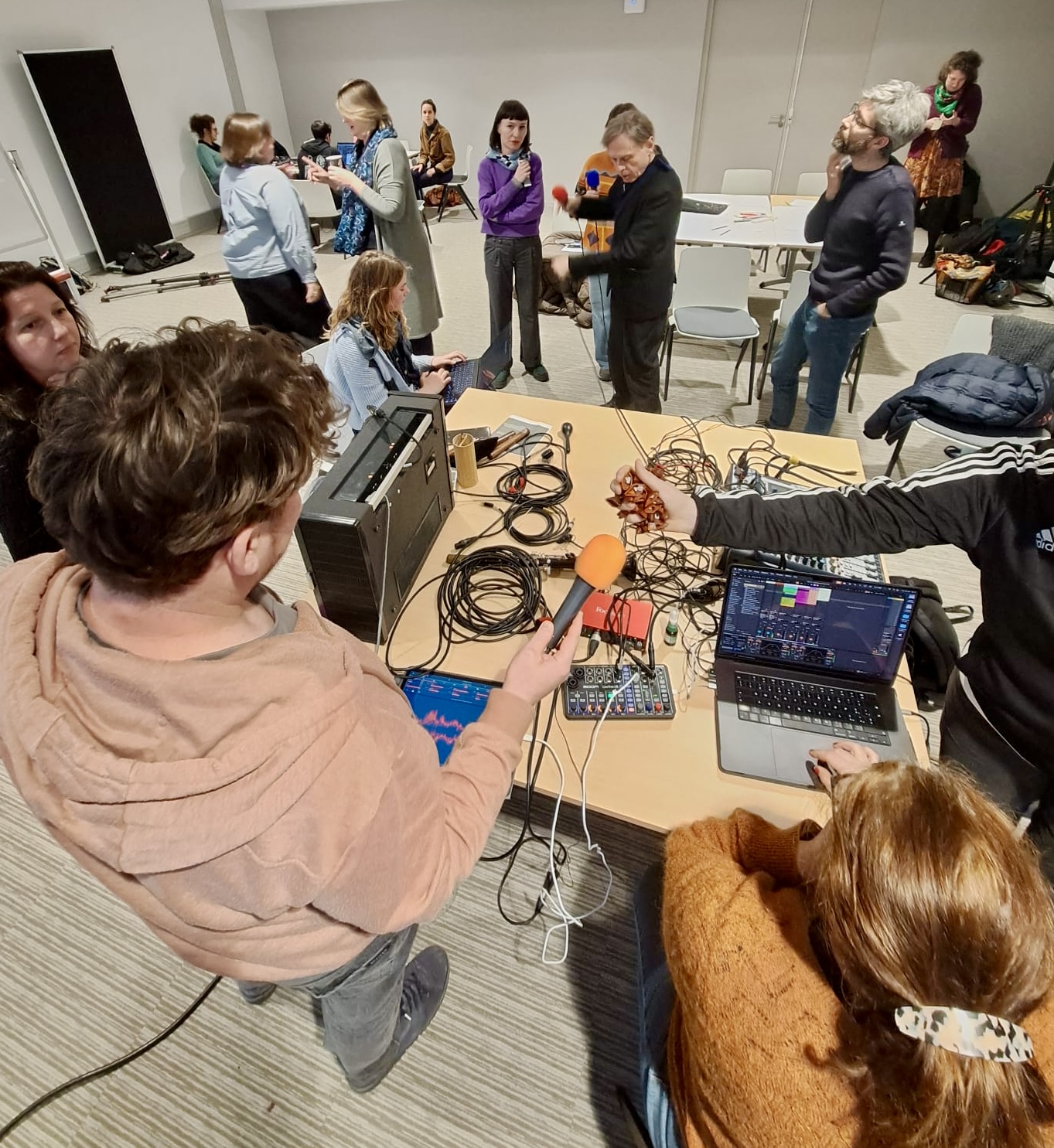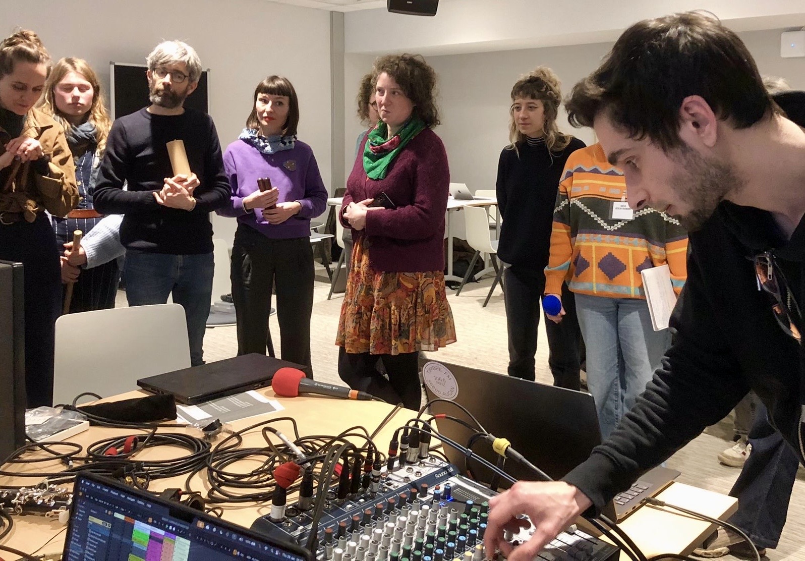 Im abschließenden Teil des Gesprächs wurde eine Klangarbeit präsentiert, die gemeinsam mit den Teilnehmenden im Workshop am Vortag entstanden war. Anschließend folgte eine Diskussion mit dem Publikum (Q&A).
