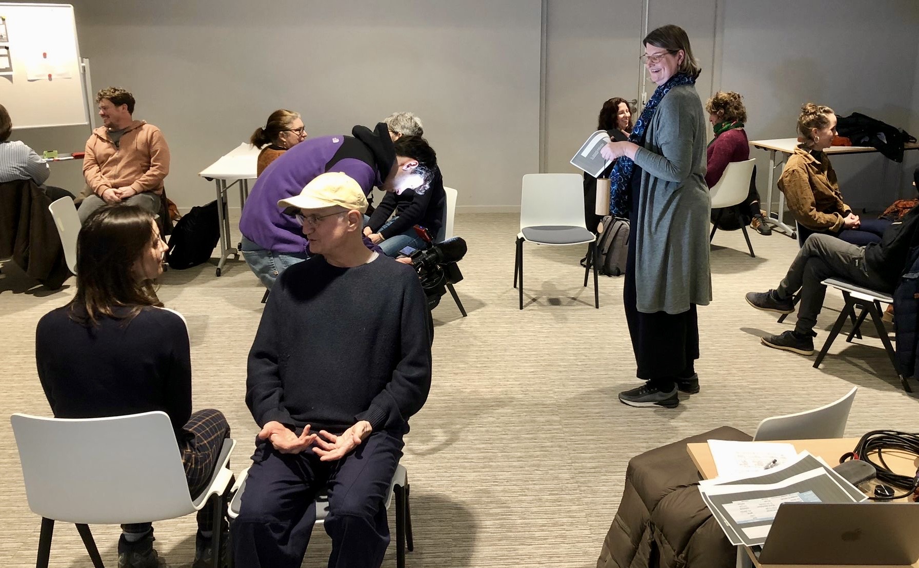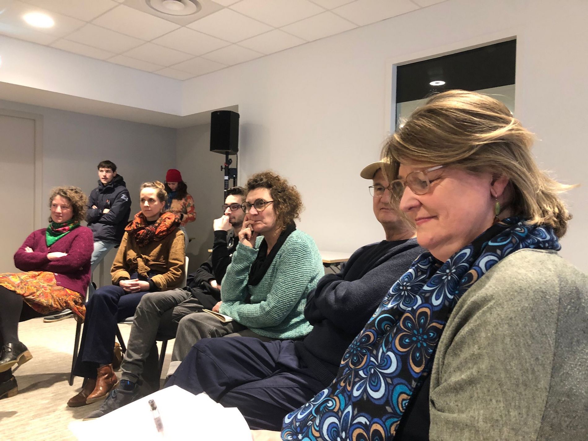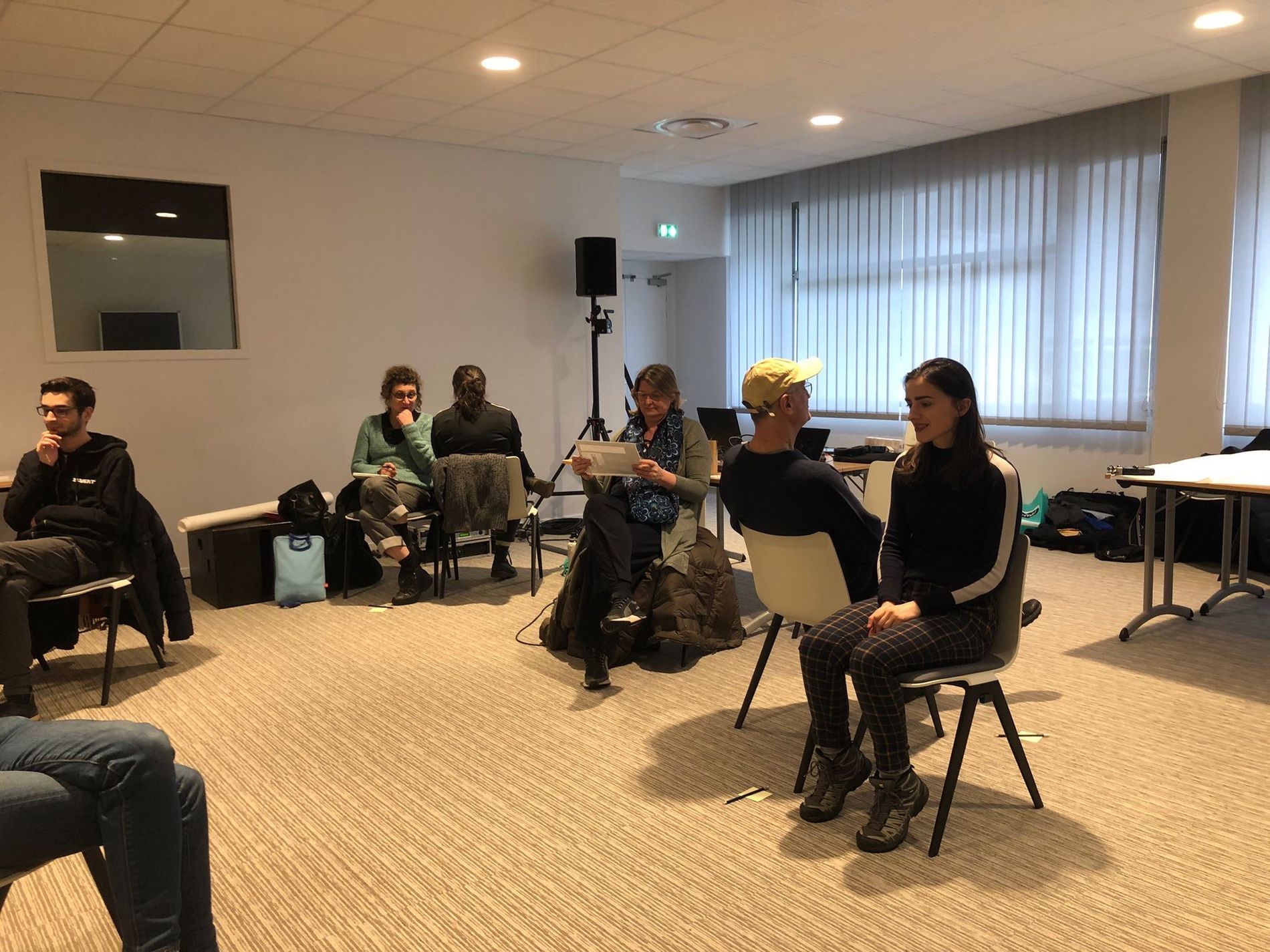 Im abschließenden Teil des Gesprächs wurde eine Klangarbeit präsentiert, die gemeinsam mit den Teilnehmenden im Workshop am Vortag entstanden war. Anschließend folgte eine Diskussion mit dem Publikum (Q&A).