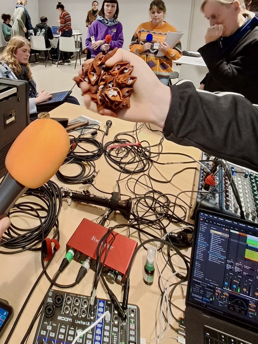 Dieser Workshop untersuchte, wie das Radio-Machen wieder zu einer sozialen, politischen oder künstlerischen Praxis werden kann, die marginalisierte Stimmen verstärkt und algorithmengesteuerte Inhalte hinterfragt. In einem kollektiven Prozess erstellten die Teilnehmenden eine kurze Radiokomposition aus Texten und Musik, die während des Workshops entwickelt wurden. Der Workshop stand allen offen, von Radiofachleuten bis hin zu Soundbegeisterten aller Hintergründe.