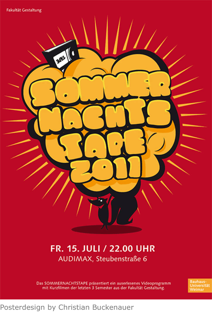 Every year in the summer a program of selected student videos is presented at the annual »Rundgang« art exhibition – time for discussion and celebration!