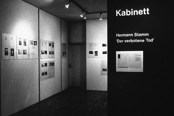 Der verbotene Tod Photomuseum 140 DIN A4 Leitz Plastikeinhefttaschen mit 98 Fotografien und Texten. Die Arbeit Der verbotene Tod beinhaltet die Auseinandersetzung mit dem Tabu des Todes in unserer Gesellschaft. Anhand von Orten, Sachen und Apparaten wird der Vorgang des Ablebens aufgezeigt ohne wirklich die Betroffenen zu zeigen. Es entstehen Sinnbilder vom Tod, die diesen umso bedrückender erscheinen lassen je mehr er durch Wahrnehmungs-und Kommunikationsverbote aus dem Alltag der Lebenden herausgehalten wird. |